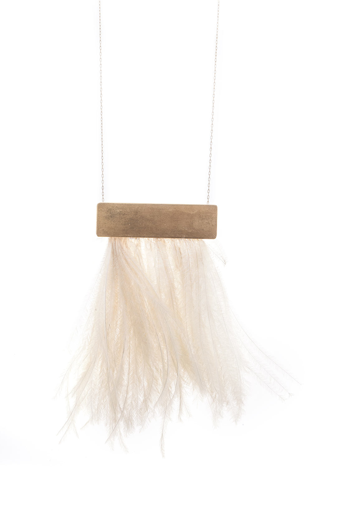 Gold-tone chain suspends a vintage-brushed bar pendant and genuine ostrich feathers flutter elegantly. 24K gold plated.Special Edition. Length: 37cm