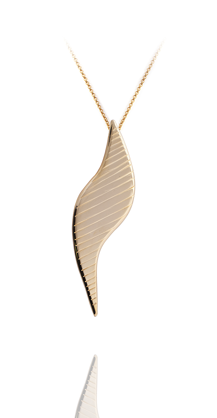 Vague but clearly inspired by the sea – wave shaped pendant hangs from a delicate 24k gold-plated chain. Length: 50cm